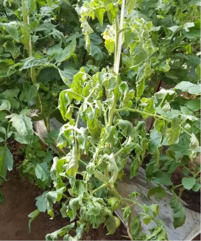 植株萎蔫,多是根部问题。本图为根腐病、枯萎病引起的植株萎蔫。