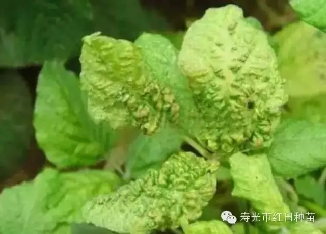 心叶卷曲不生长,缩叶癌肿丛生状,
