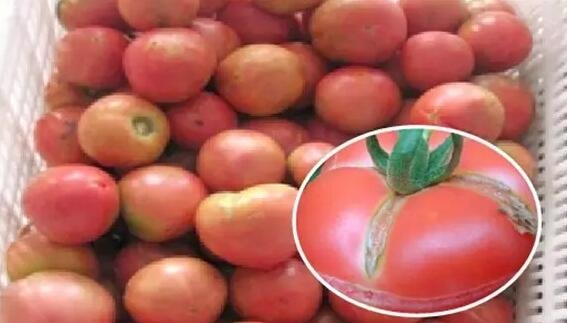 药害导致裂果,一种情况是喷药间隔期短而且药物种类多,第二种情况就是喷药浓度偏高或时间不合理。有些菜农为了防治害虫,三天一遍杀虫剂,而且每次喷的杀虫剂种类很多,这就容易出现药害,使果皮木栓化程度加重而容易出现裂果。针对这种情况,建议菜农朋友根据棚内害虫有针对性的选择杀虫剂以及合理的物理防虫措施,以减少喷药次数。例如防治白粉虱,联社专家建议:安装粘虫板和防虫网、冲施阿克泰、叶面喷施烯啶虫胺,这三项措施同时进行,基本可保证棚内不会出现白粉虱。