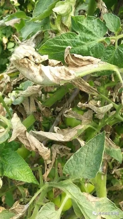 番茄晚疫病的发病部位往往病健交界处不明显,而且多是从叶缘开始的
